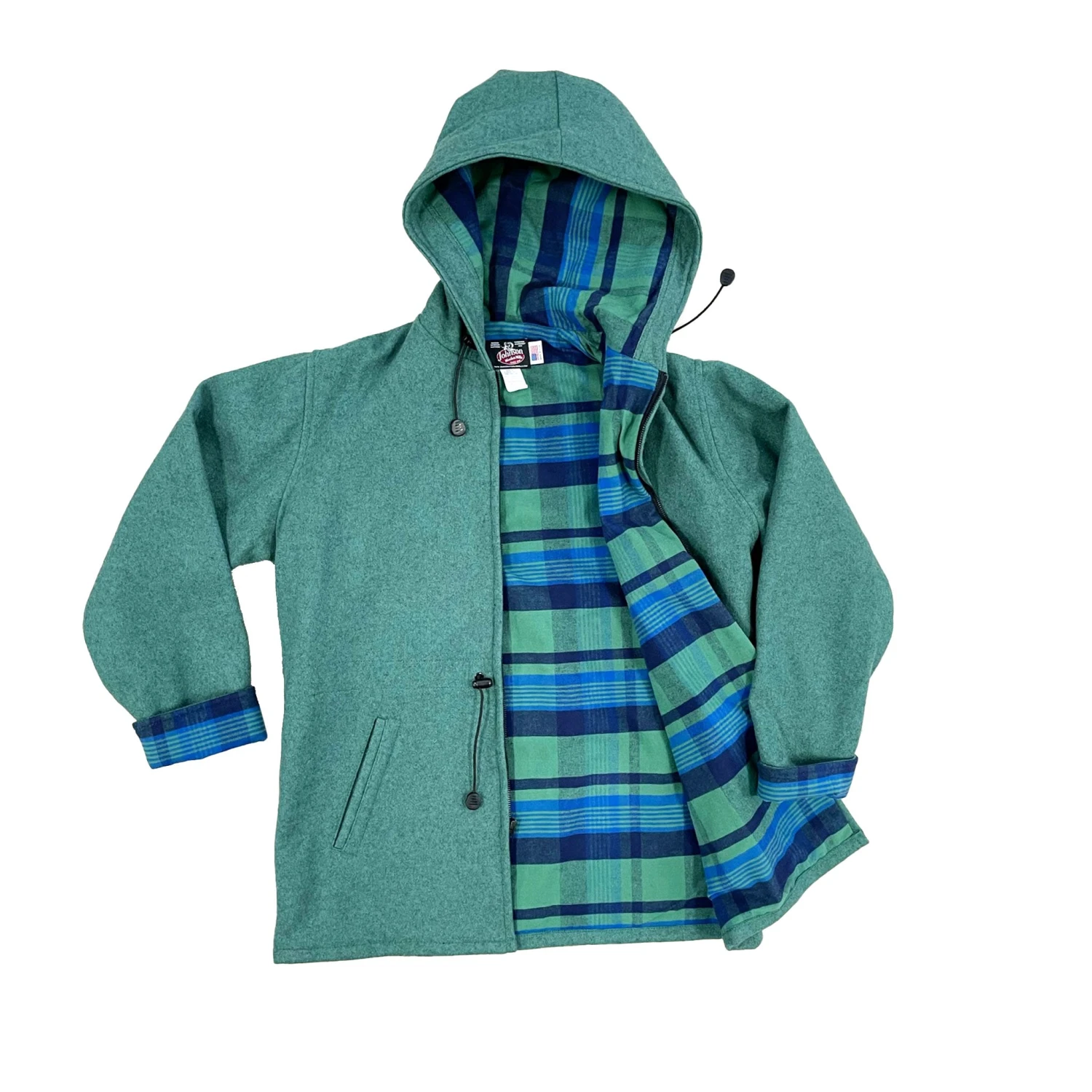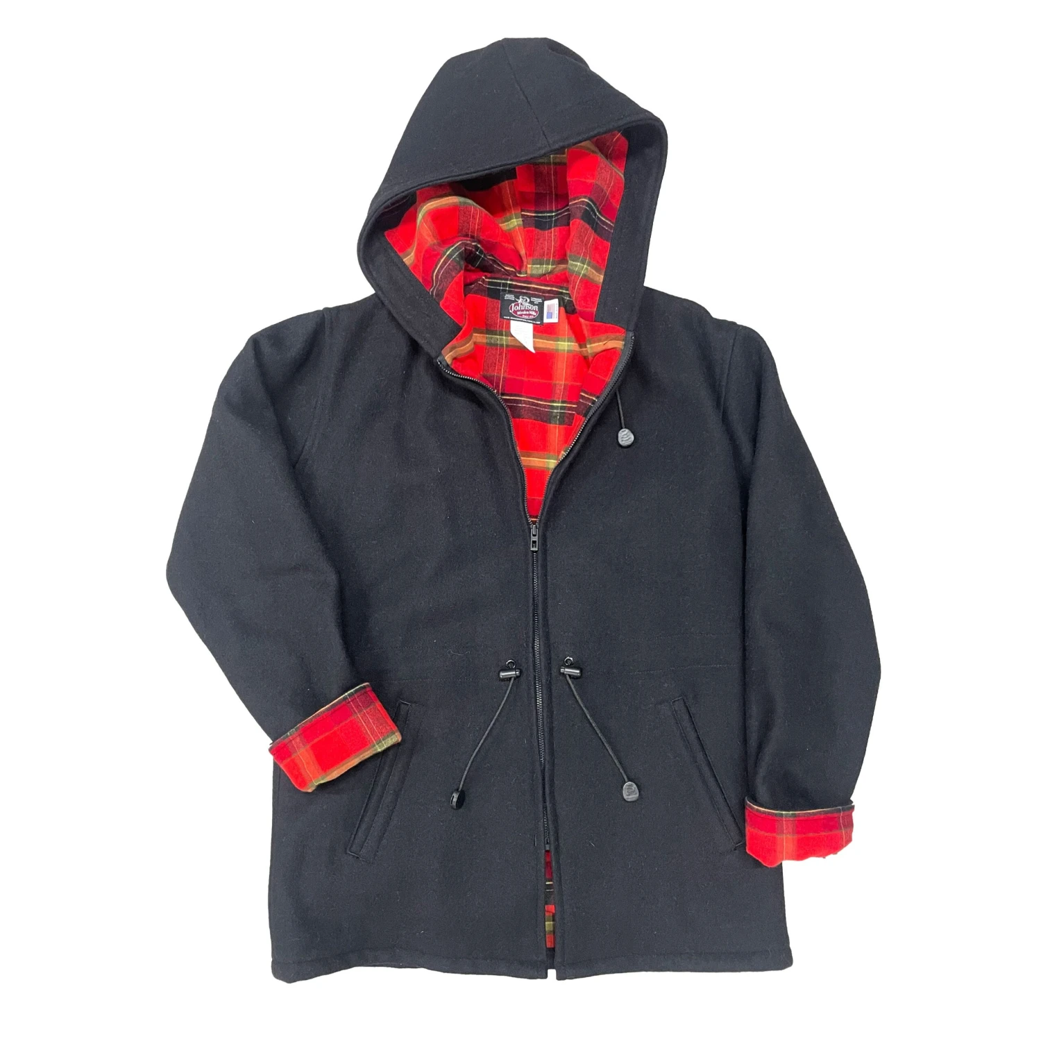 The Women’s Anorack Wool Jacket by Johnson Woolen Mills is soft and cozy featuring flannel lining, two slash pockets, lined hood and roll up cuffs. Also Includes drawstring waist and sturdy front zipper.
