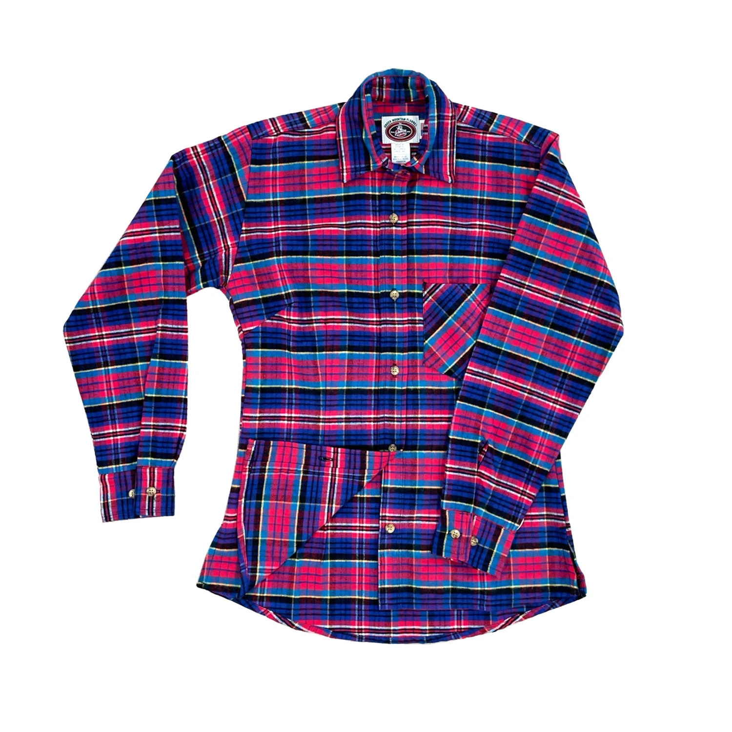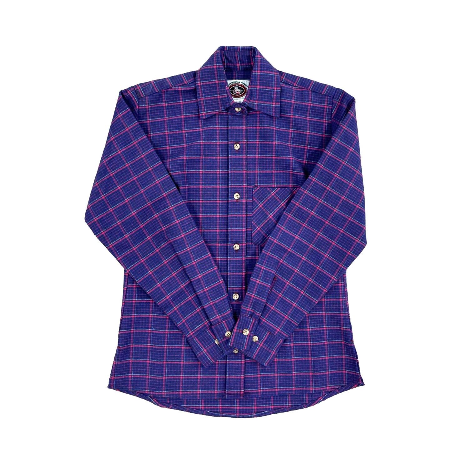 Handmade double brushed 100% cotton 8oz flannel for soft comfortable warmth. Tailored for shape our ladies flannel shirt features rear darts for unmatched comfort and fit, button front, 1 chest pocket, long tail and button cuffs.